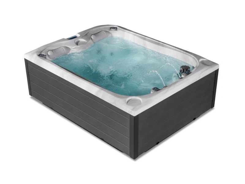 Emeer Basic ist ein moderner Whirlpool, der maximale Entspannung für bis zu drei Personen bietet. Er verfügt über zwei ergonomisch geformte Liegen unterschiedlicher Tiefe nebeneinander sowie einen bequemen Sitzplatz, wodurch ausreichend Platz und Komfort für gemeinsame Entspannungsmomente geboten werden. Dieses Modell wurde exklusiv für Mountfield in Zusammenarbeit mit Canadian SPA International entwickelt und legt großen Wert auf die neuesten Trends in Ergonomie und Komfort. Ideal für alle, die Spitzenqualität mit modernem Design verbinden möchten.