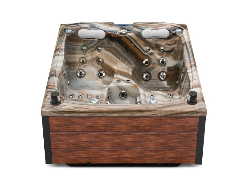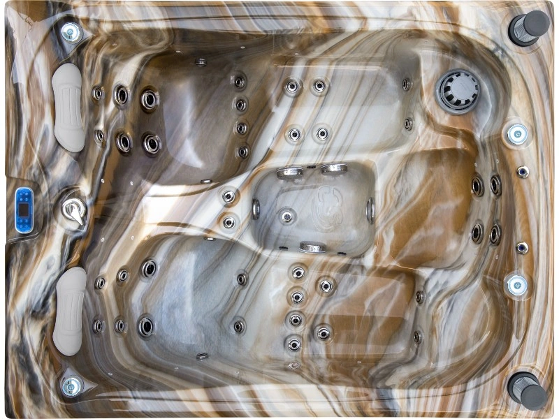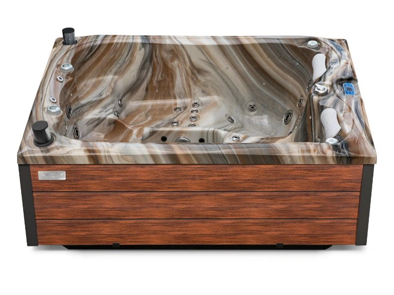 Die elegante Tuscan Sun-Oberfläche in Kombination mit hochwertigem Aristech-Acryl verleiht dem Spa ein luxuriöses Aussehen und langlebige Robustheit. Zudem verfügt er über Wi-Fi-Konnektivität, ein integriertes Audiosystem, zentrale LED-Beleuchtung und einen verstellbaren Wasserfall für tiefe Entspannung.