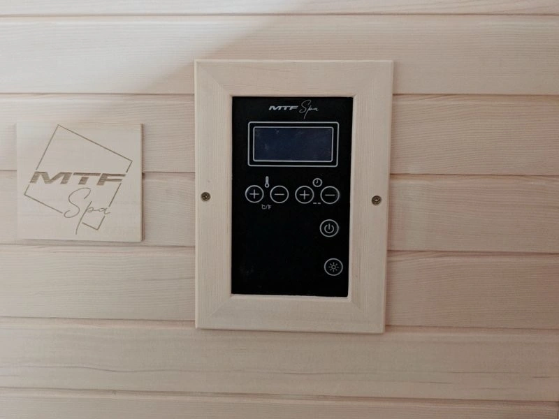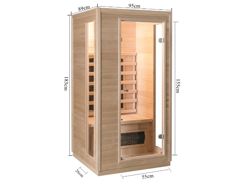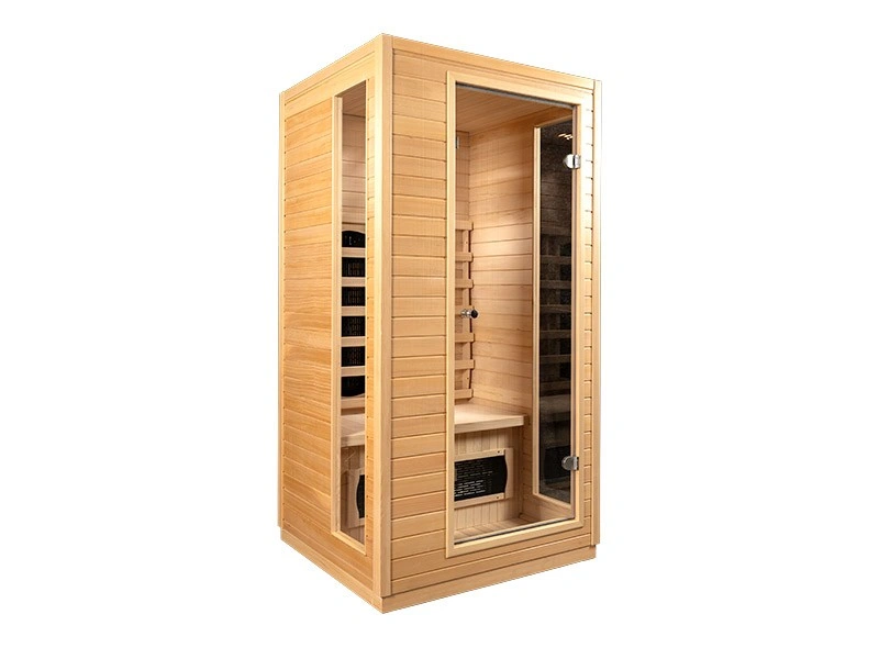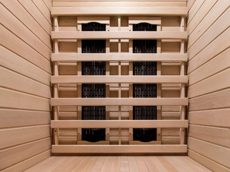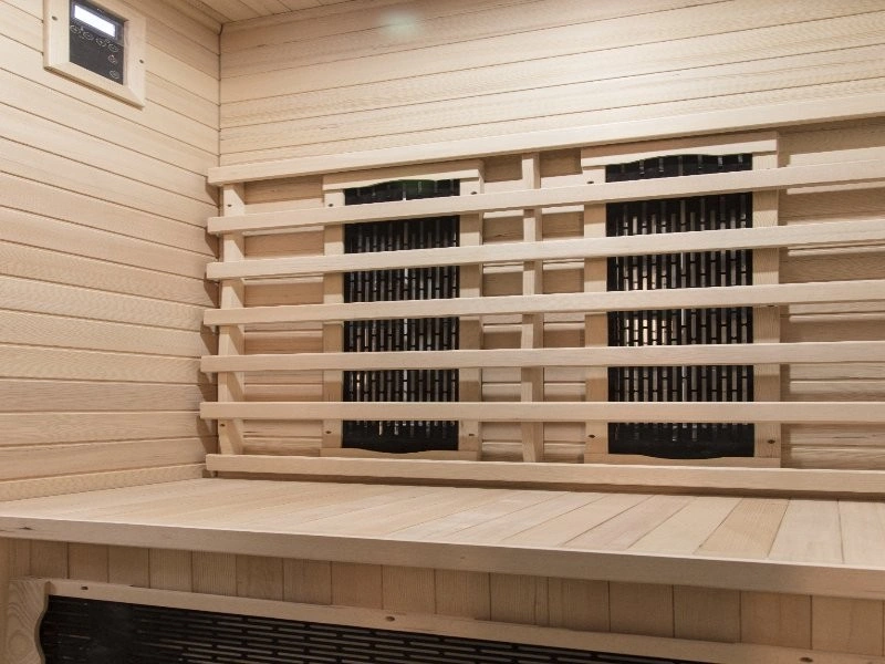 Die Sauna besteht aus kanadischem Hemlockholz, das ideal für den Bau von Infrarotsaunen ist. Dieses Holz enthält keine Harze und verströmt keinen unangenehmen Geruch.